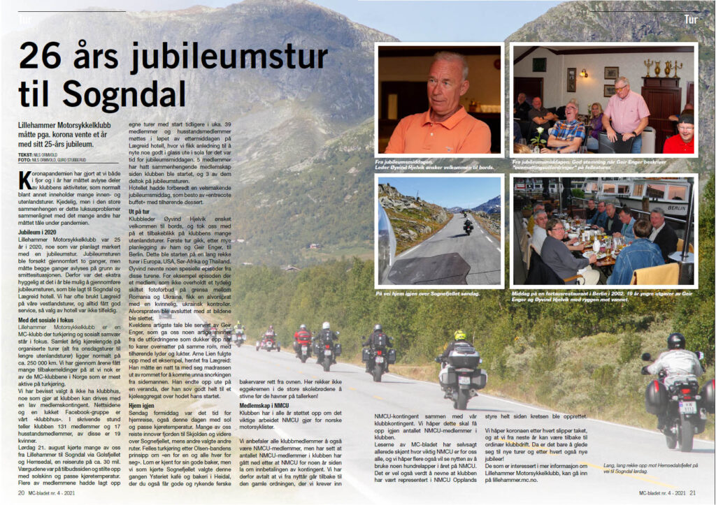 NMCU har publisert en artikkel om vår 26 års jubileumstur i siste utgave av MC Bladet, som kom ut i dag. Les hele artikkelen her.